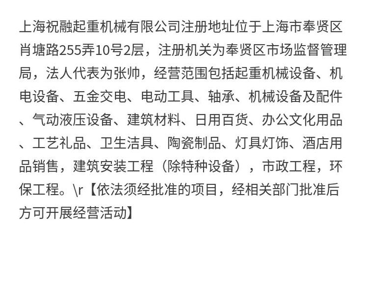 商铺名称:上海祝融起重机械有限公司