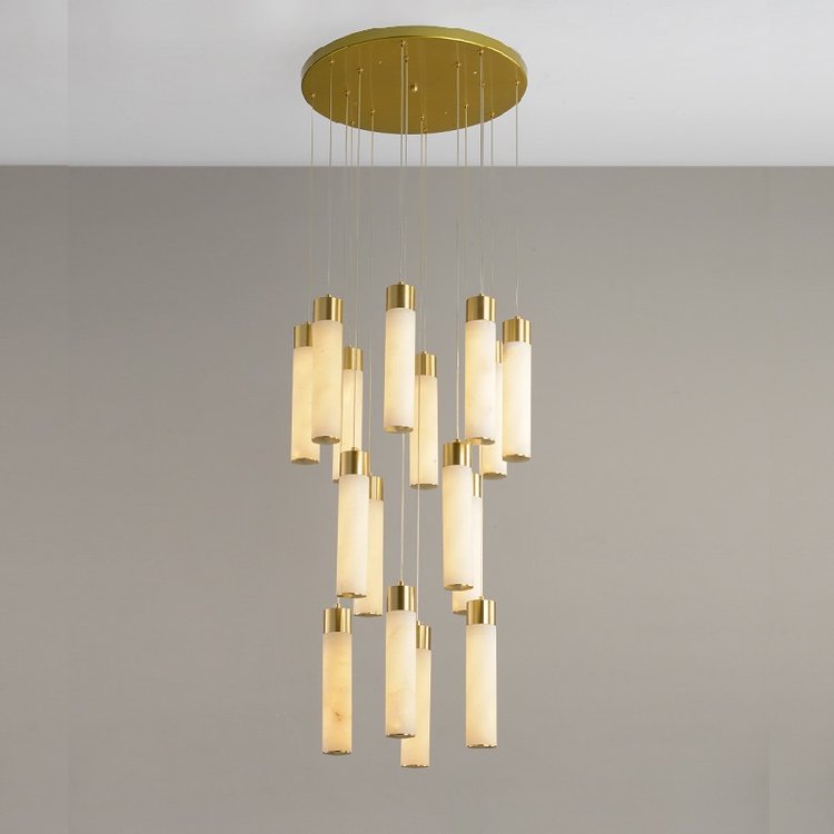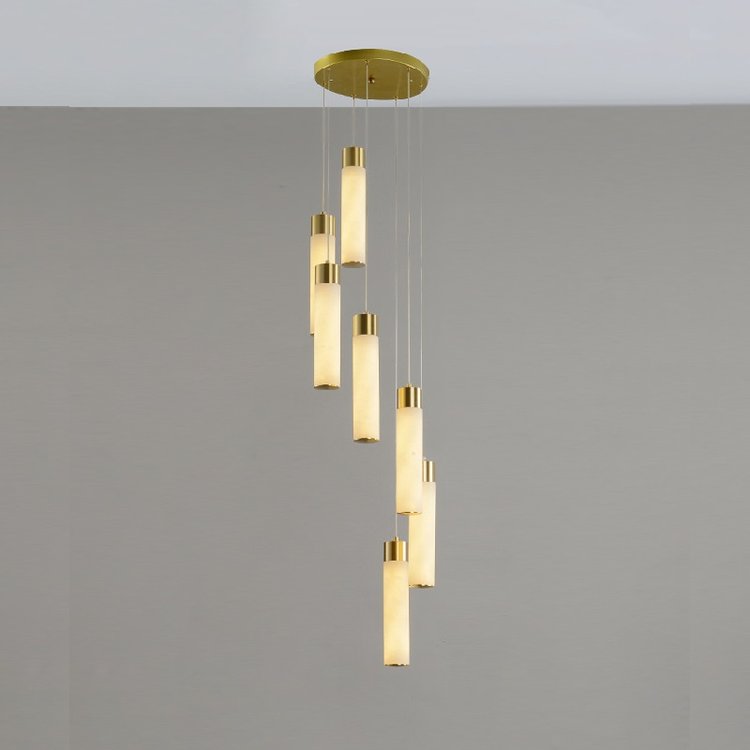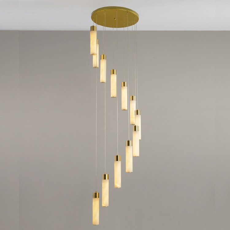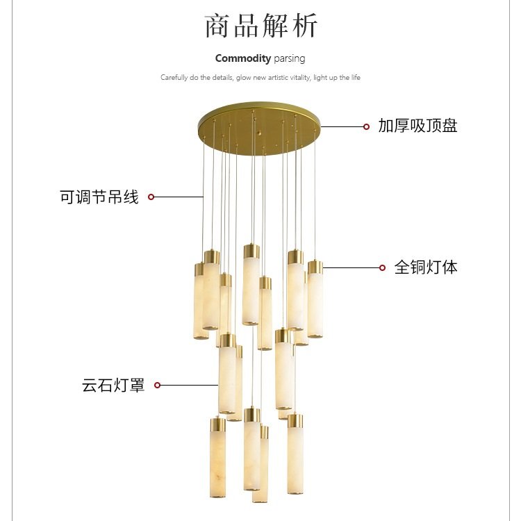 宝云全铜云石灯饰自建房别墅复式楼客厅现代轻奢中空旋转楼梯吊灯,厂家支持来图来样定制,低调奢华,高贵不贵