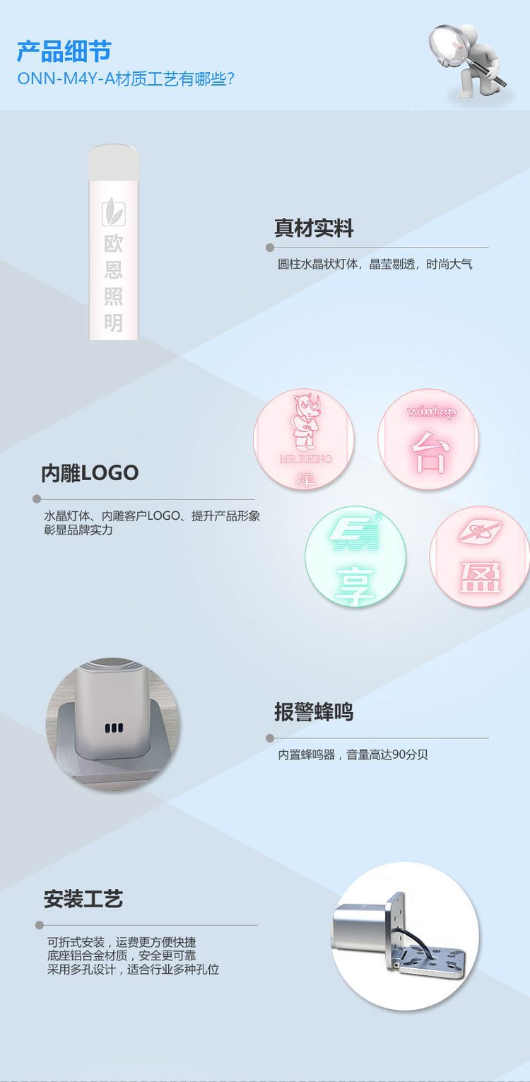 欧恩照明水晶三色警示灯ONN-M4Y-A亚克力灯体可定制雕刻LOGO