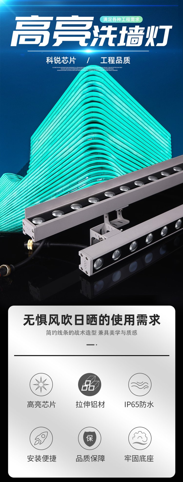 led洗墙灯户外防水大功率七彩室内射灯外墙明装24v线性灯亿帆光电
