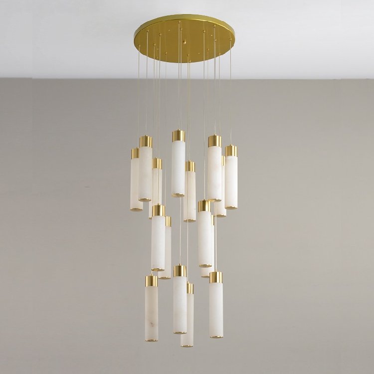 宝云全铜云石灯饰自建房别墅复式楼客厅现代轻奢中空旋转楼梯吊灯,厂家支持来图来样定制,低调奢华,高贵不贵
