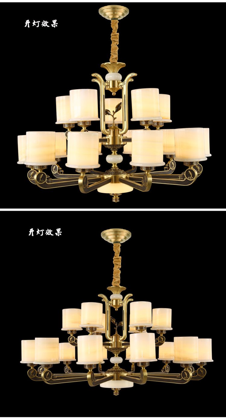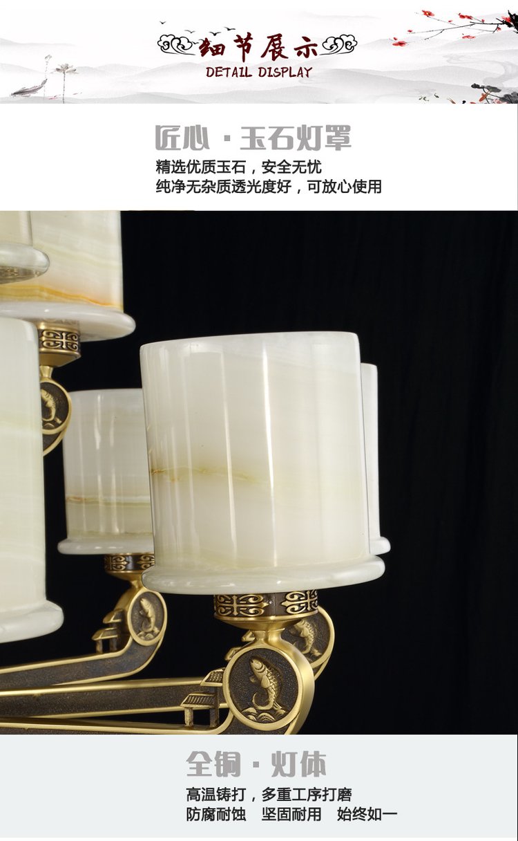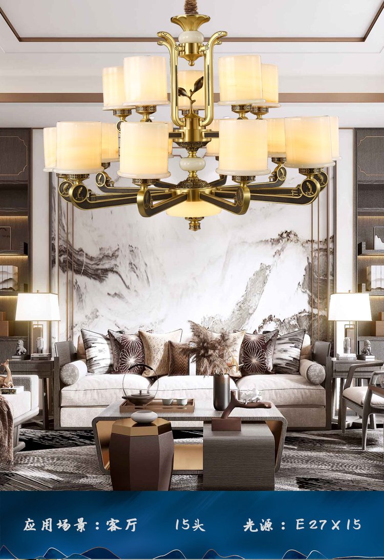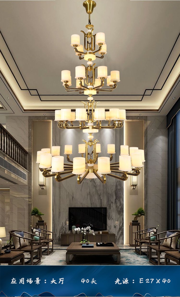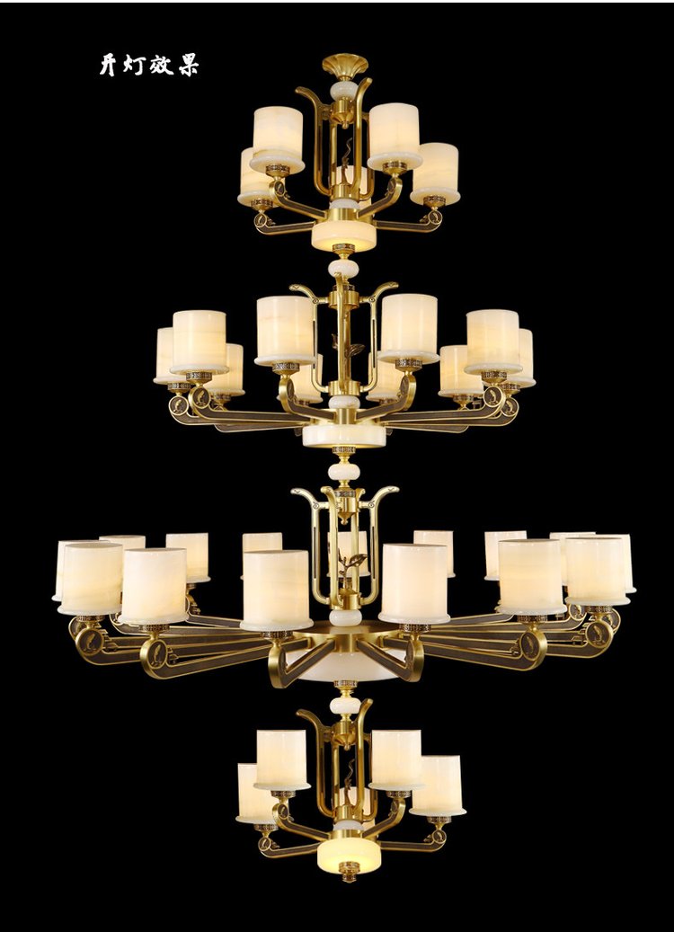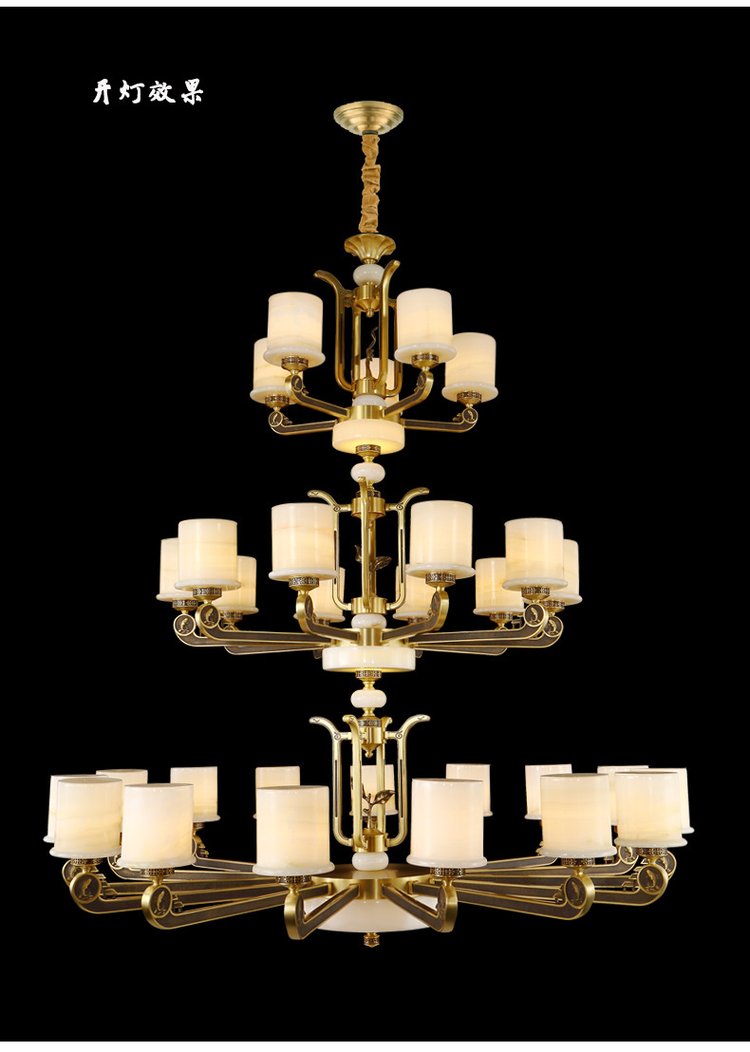 宝云新中式全铜玉石吊灯 复式楼餐厅客厅灯 自建房别墅大厅吊灯