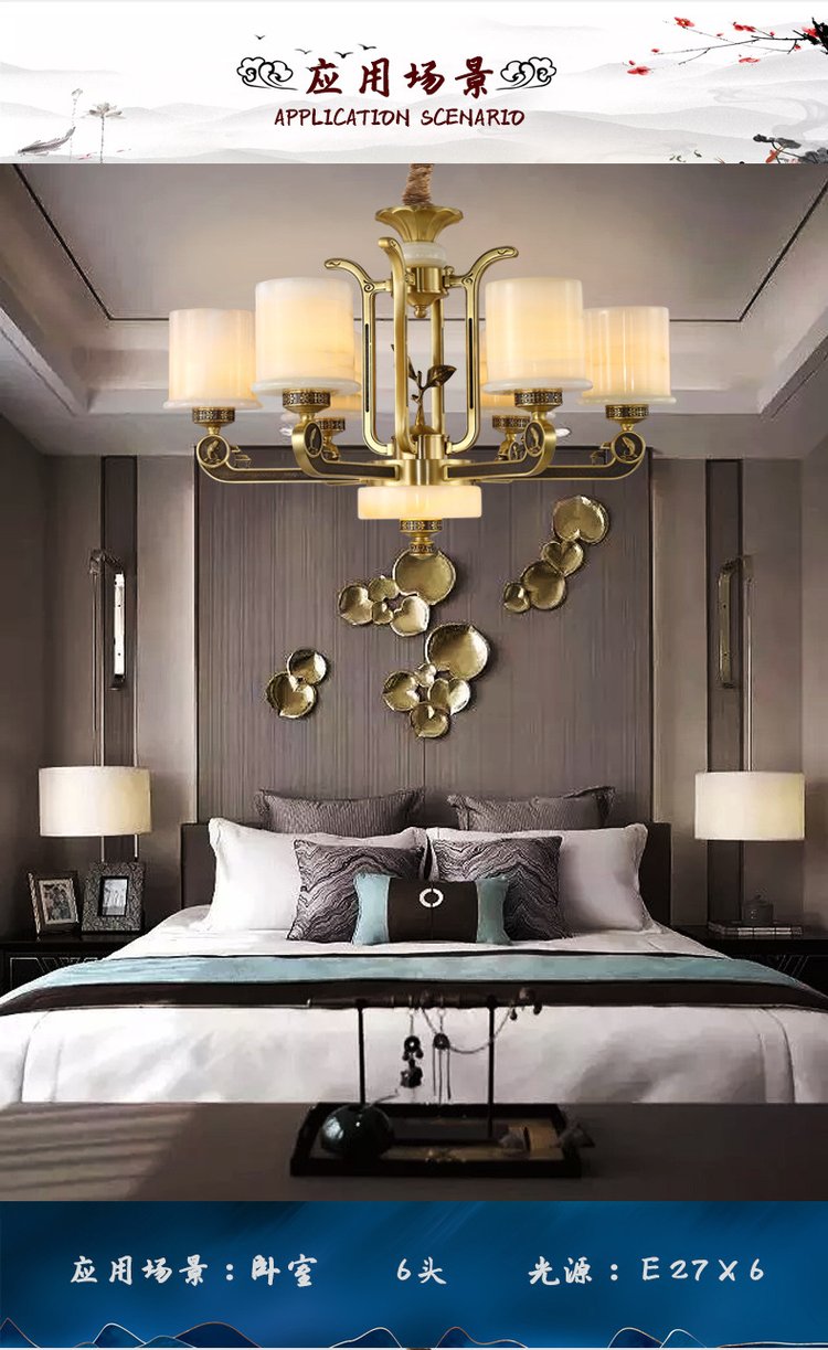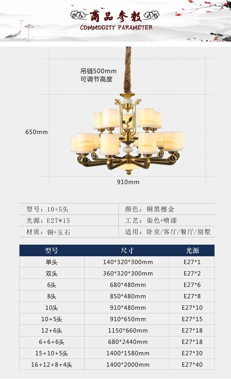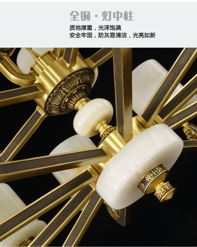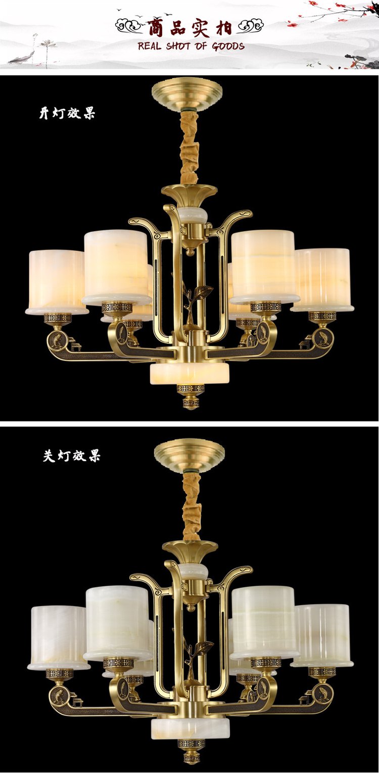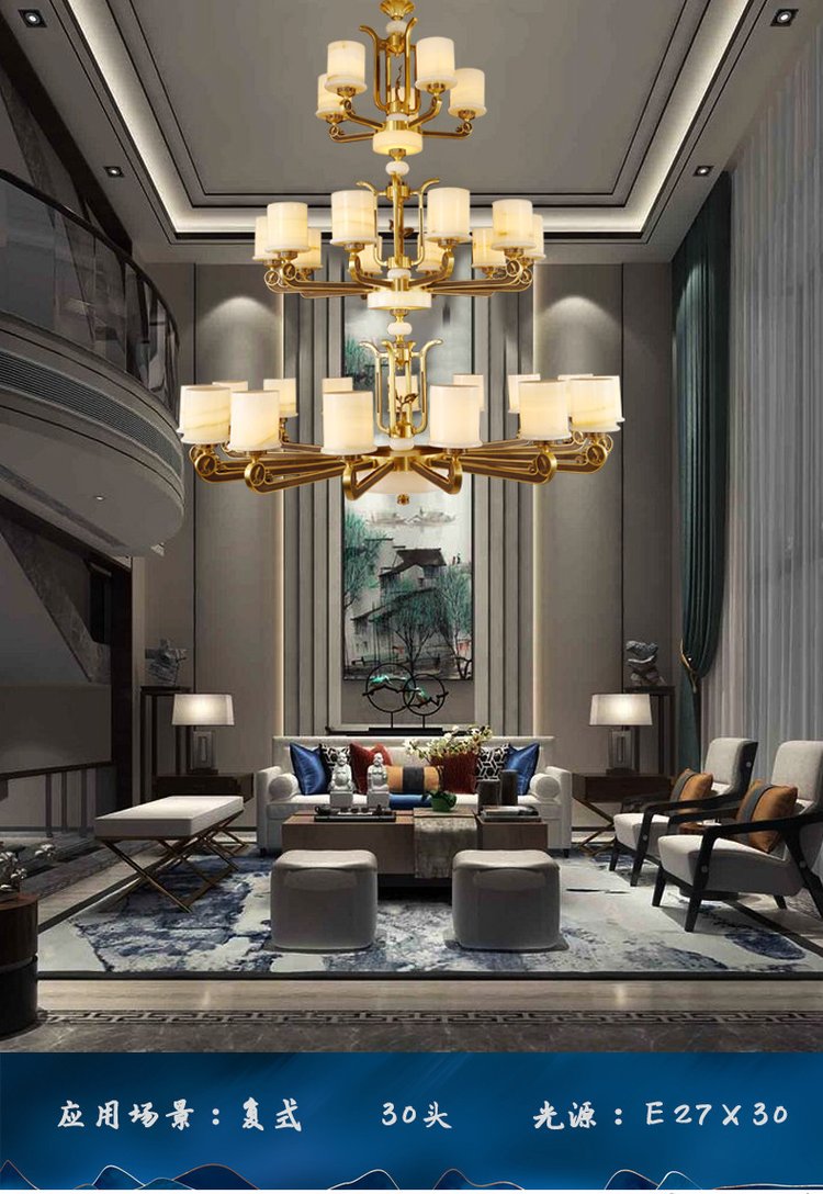 宝云新中式全铜玉石吊灯 复式楼餐厅客厅灯 自建房别墅大厅吊灯