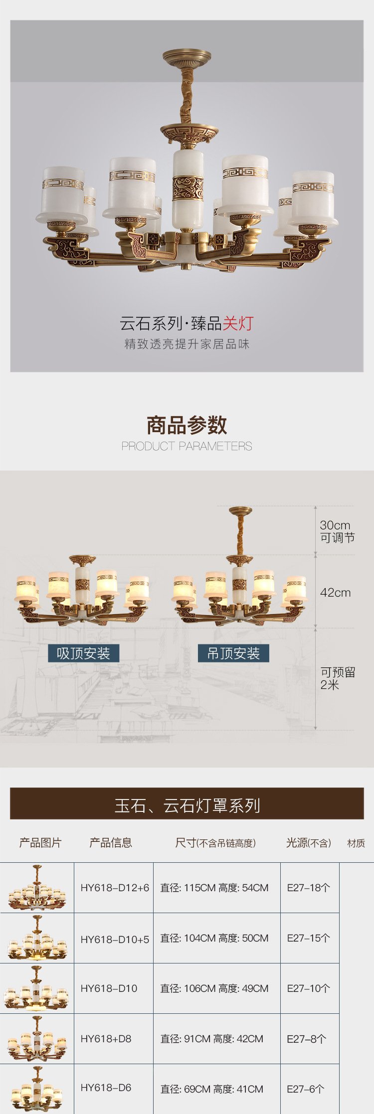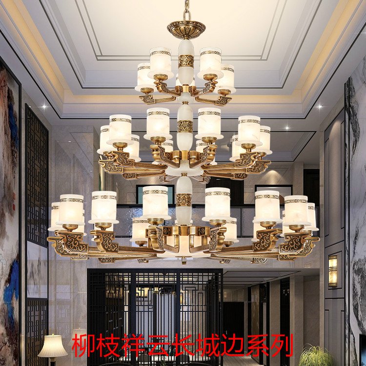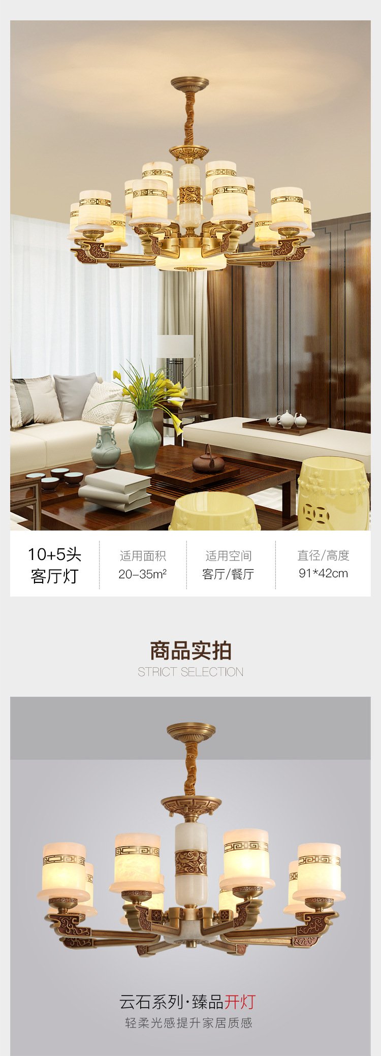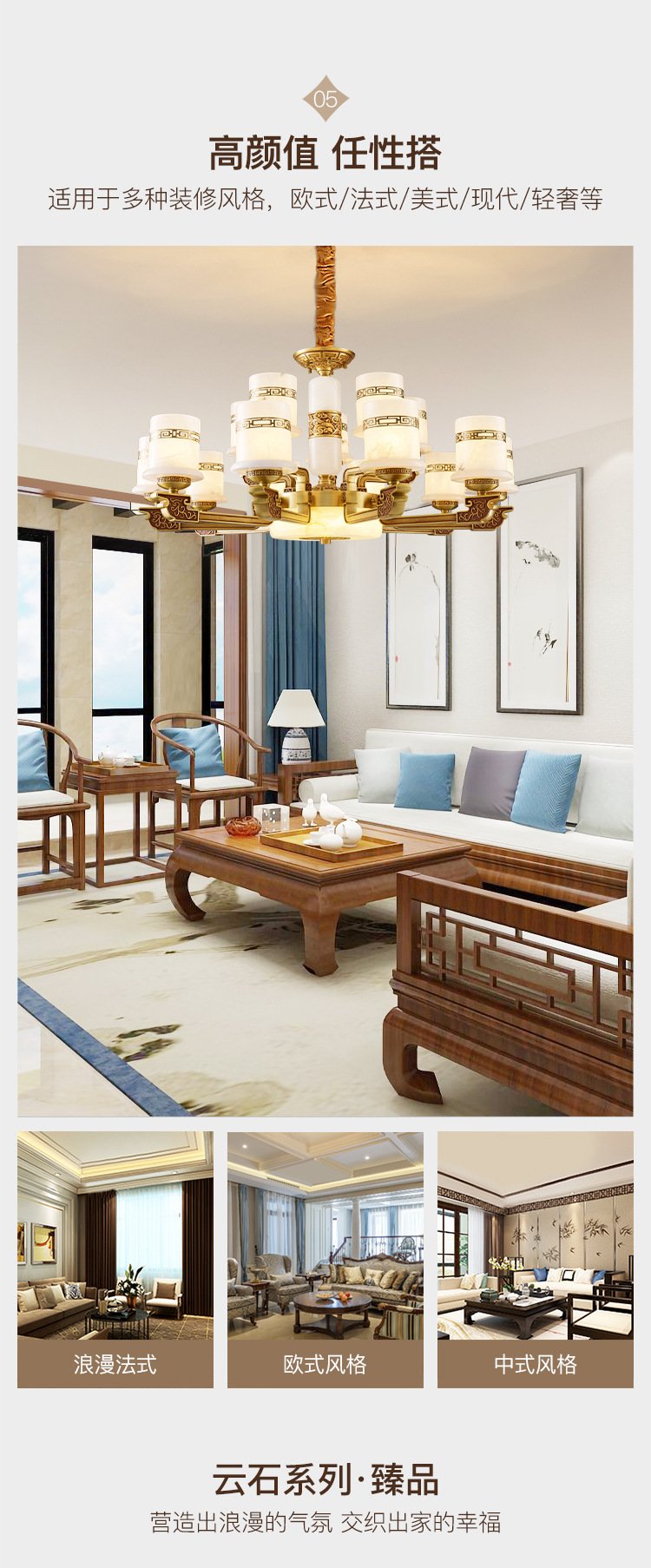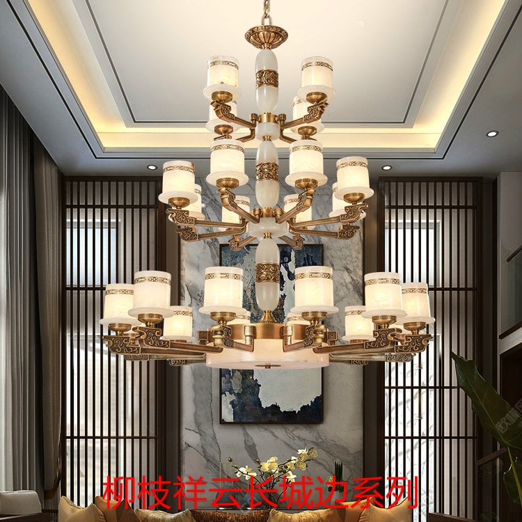 新中式全铜吊灯 西班牙进口天然别墅云石灯 宝云奢华家装灯具