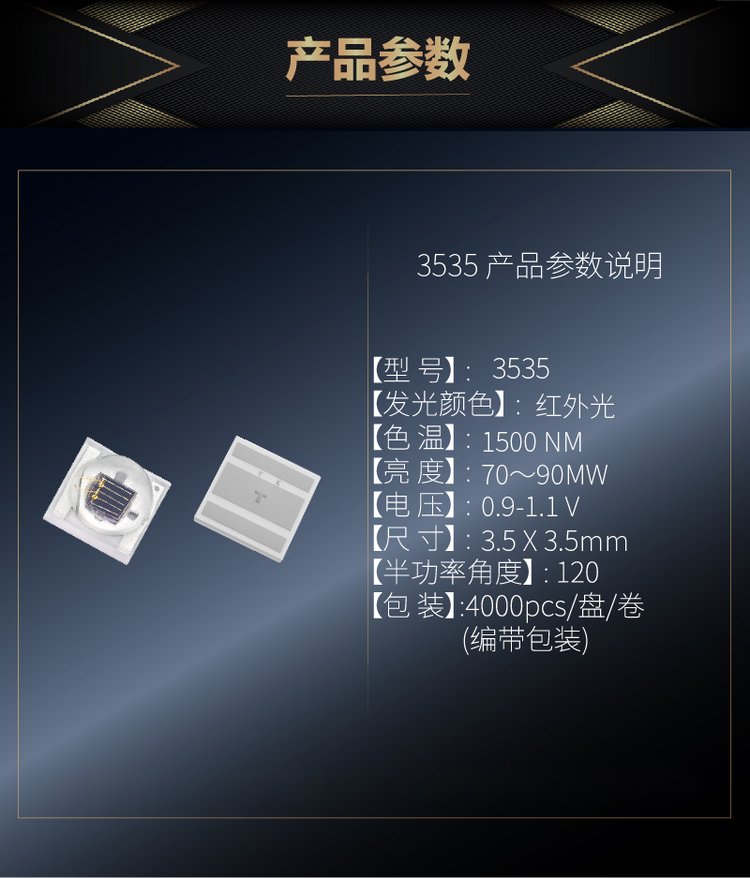 1450nm红外灯珠1400nm机器视觉光源隐裂检测3535大功率LED灯珠