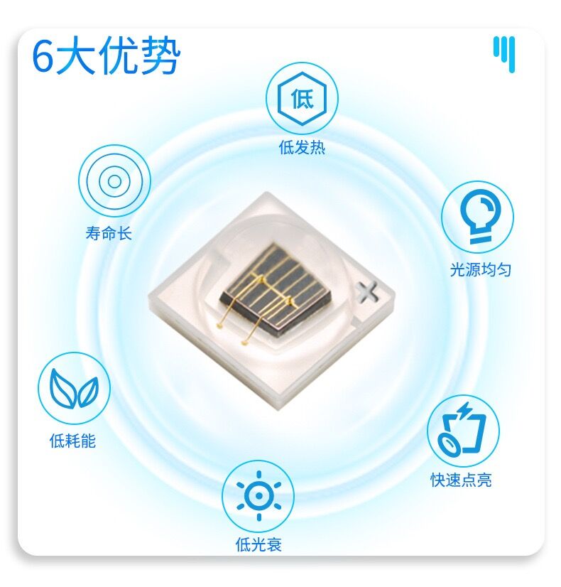 产品特点 | 晶元芯片 耐高温 低热量 高亮度 发射距离较远 | ||