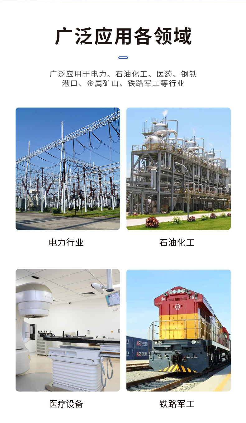 适用范围 | 应用于电力、石油化工、医药、钢铁港口、金属矿山、铁 | ||
