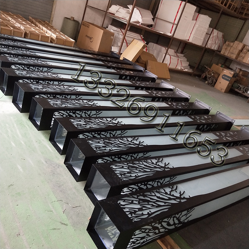 方形大景观灯磨砂钢化玻璃灯罩景观灯镀锌板雕刻花纹庭院灯道路灯工厂图