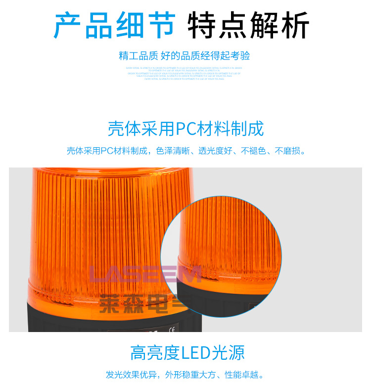 5、适于用恶劣环境下正常工作警示灯通常是用在机械设备等开发。一般情况下,用处可以提供多样的长度的产品的,有灯罩组合的构造,需要时一边方向的灯罩可以组合复合颜色。此外,还可以根据光源形式的不同,分为:1灯泡旋转灯;2LED闪光灯;3氙气灯管频闪灯,其中LED闪光形式的是灯泡旋转形式的升级版,使用寿命更长,更节能,更环保!