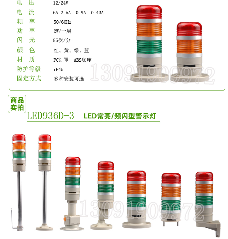 936D-W3J多层小型警示灯 三色设备指示灯 机床信号灯12V24伏