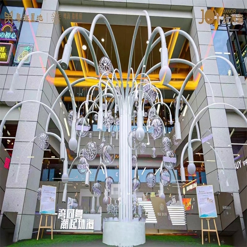 烟泡树整个装置为一个大型树状雕塑,也可以定制别的造型,有20~30根不等的树枝组成,每一根树枝都在源源不断地吹泡泡。