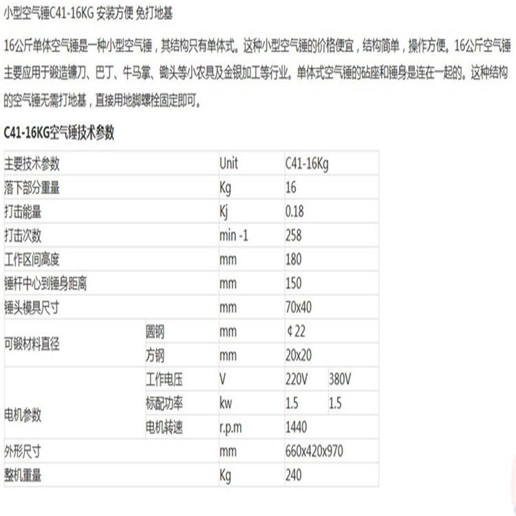免打地基小型空气锤C41-16KG打铁机器安装方便