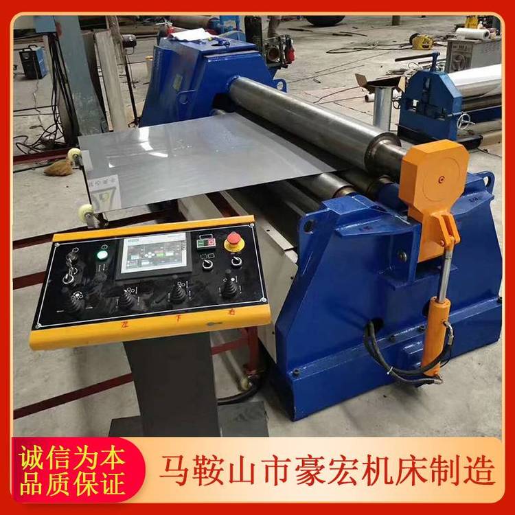 适合用于金属板材的弯曲变形,可卷制圆形,弧形和锥形工件,并有板材端部预弯功能,本机型两个下辊为主动辊可水平移动,上辊为从动辊可上下移动,移动方式有机械式和液压式,传动轴均采用万向连轴器连接。