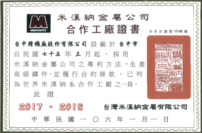 台中精机厂股份有限公司创立于1954年,一直专业从事数控机床的研发与制造,在台湾总部拥有技术领先的研发团队及精良完善的生产制造基地。基地面积达200亩,总投资额:美金 1.3亿元,目前设有:铸造厂、钣金厂、恒温精密加工车间、FMS自动化零部件生产线、恒温无尘主轴装配中心、CNC研发与实验室、装配车间等,从床身铸造生产、关键性零部件加工、钣金制造、装配—等拥有70%的高自制率。年生产数控机床 2,000多台,无论产值、产量、规模均居台湾机床同业前茅,为台湾第一大机床专业制造厂,华人圈第一品牌。主要产品有:CNC立式数控车床、CNC卧式数控车床、CNC立式加工中心、CNC卧式加工中心及数控精密注射机。台湾总部目前有职工900多人,在海外设有7个分公司(美国、法国、德国、英国、南非、马来西亚、泰国)。