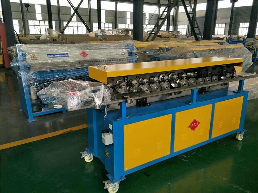 共板法兰机是法兰成型于风管自身板材连接端口的专用设备。共板法兰系统是国际上风管制作法兰连接量大系统之一,具有成本低、密封性能好、安装简捷方便的特点,特别适用于截面面积不大的风管生产。共板法兰系统可用于打规模工业话生产,是一种高效风管法兰系统。具有良好的刚性和稳定性,运动成型形状美观平整。与压筋机、剪板机、共板法兰折边机等组合可形成简易型全自动风管生产线
