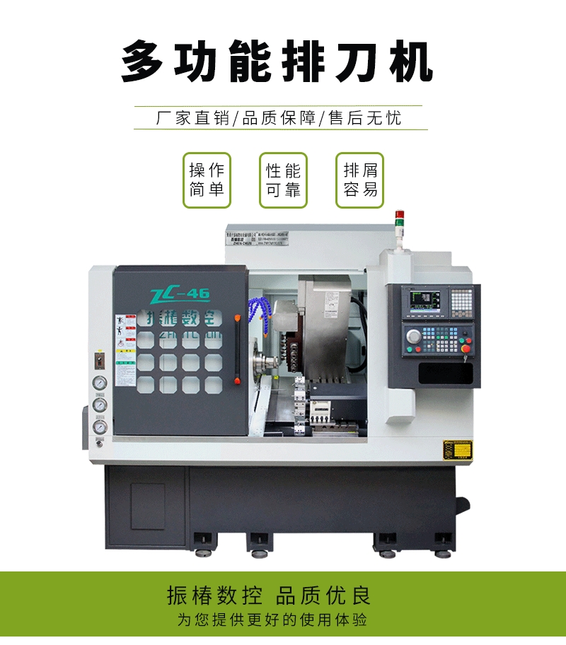 振椿刀塔系列数控车床,对刀速度快,精度高,适合多样少量精密零件加工.