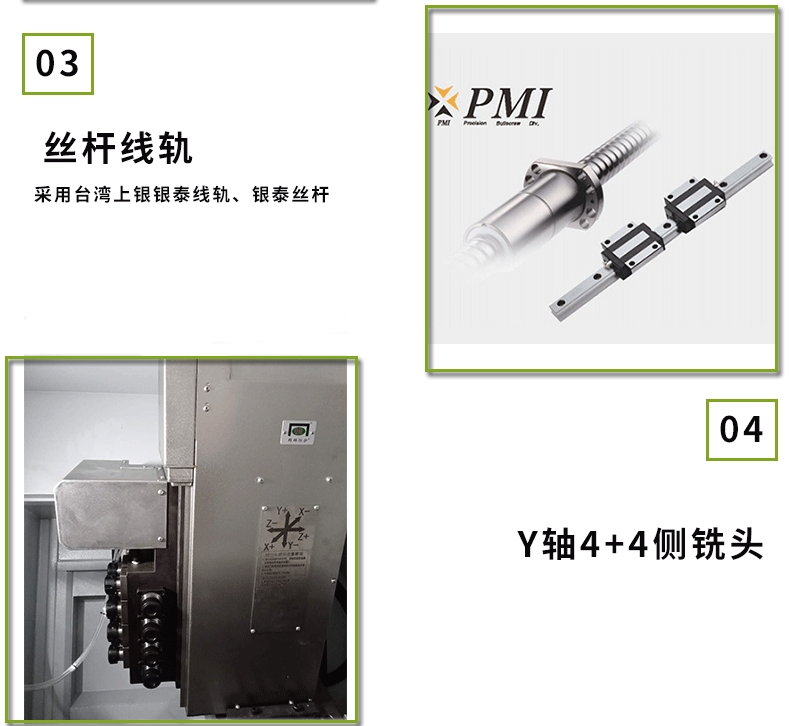 ·排位式动力装置,齿轮式传动,滚珠丝杆及线性滑轨传动,动力刀具与电机直联传动,车削转换至铣削加工时间1秒钟