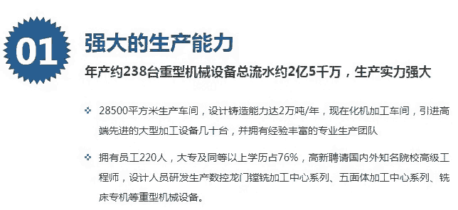 横梁立柱采用高强度铸铁整体铸造,导轨采用阶梯状分布,机床整体刚性强,精度保持性好。