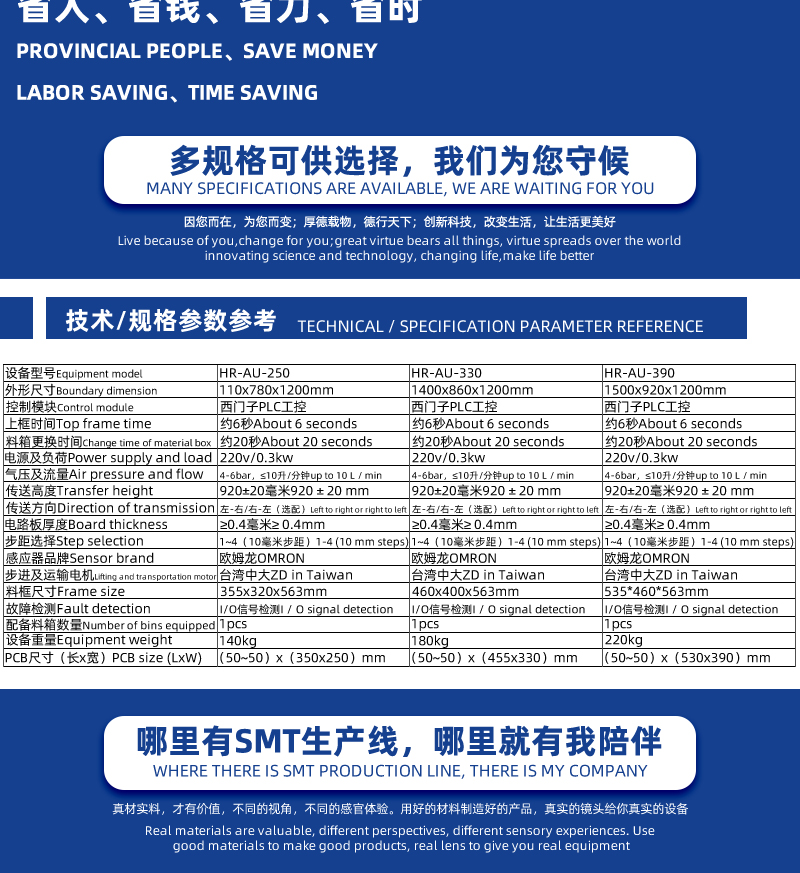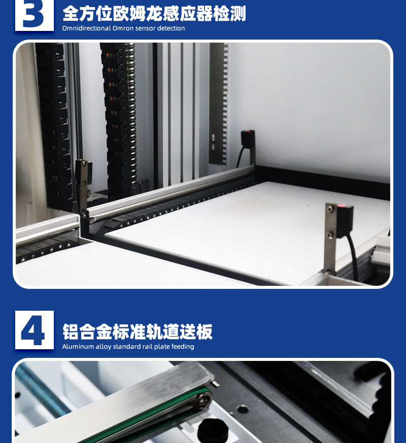 东莞市合瑞电子科技有限公司是一家专业电子生产设备制造商,专注SMT周边设备整条线配备服务。全自动上板机(Automatic Unloader)广泛应用于 SMT 生产线的源头,用以将装在周转箱内的PCB 逐一发送给后续设备而实现上板功能,它的送板动作受后续设备的需板信号的控制,若全自动送板机已全部送完板则它又会反制约后续设备停止工作,并发出声光提示,它也可以为某一个单独的SMT设备实现上板功能。