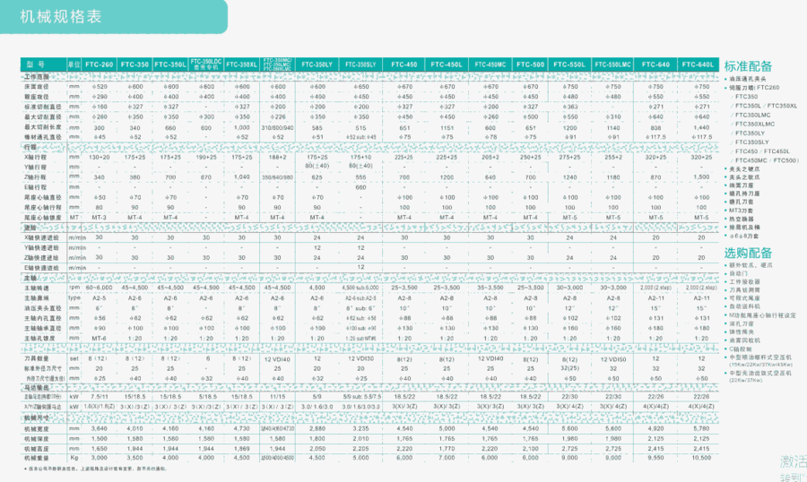 FTC-10、FTC-20、FTC-20L、FTC-30、FTC-260、FTC-300、FTC-350、FTC-350L、FTC-350XL、FTC-350LY、FTC-350LMC、FTC-350XLMC、FTC-350SLY、FTC-450、FTC-450MC、FTC-640L FT-200、FT-250、FT-350AL友佳车削中心 |