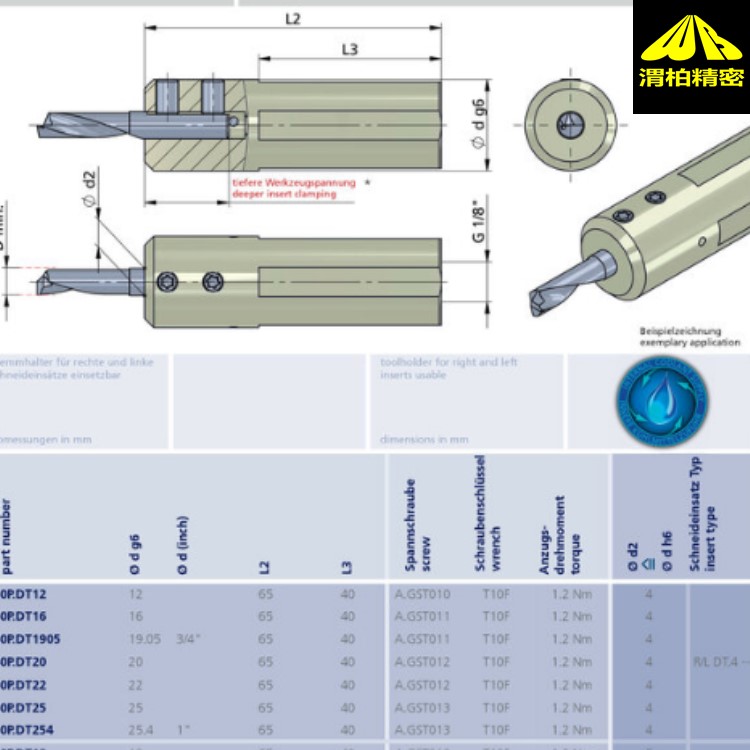 德国Dummel微型镗刀杆dummel夹钳和异径套筒带冷却液接口其德国DUMMEL整体合金镗刀杆特点: