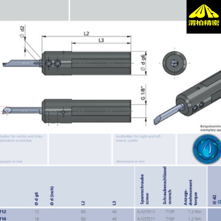 直径从 ? 12/12.7 mm 起,用于切削刀片 Dmin ? 0.2-7.8 mm