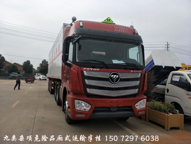 该车顶部封闭,不可开启.运送危险货物车辆的类型:AT型.运输独立包装的介质:农药废物,木材防腐剂废物,有机溶剂废物,热处理含氰废物,废矿物油,精(蒸)馏残渣,染料(涂料废物),有机树脂类废物,感光材料废物,表面处理废物,含金属羰基化合物,含铬废物,含铜废物,含锌废物,含砷废物,含硒废物,含镉废物,含汞废物,含铅废物 ,有色金属冶炼废物,其他废物(含油抹布)(含铅酸电池),类项号:9.采用适用于牵引危险品运输半挂车的牵引车.