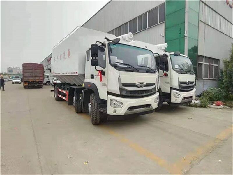 散装饲料车,又名散装饲料运输车,散装粮食运输车。结构简单、性能可靠、输送量大、操控方便、机动性强、对物料无污染等特点,广泛应用于各大中小型养殖企业的饲料的运输。主要用于从饲料厂向畜牧场、养禽场及饲料加工用户运输散装饲料成品或饲料生产原粮,同时它也可用来运输某些无腐蚀性粉粒状原料,如制药厂粉料和粮库周转。