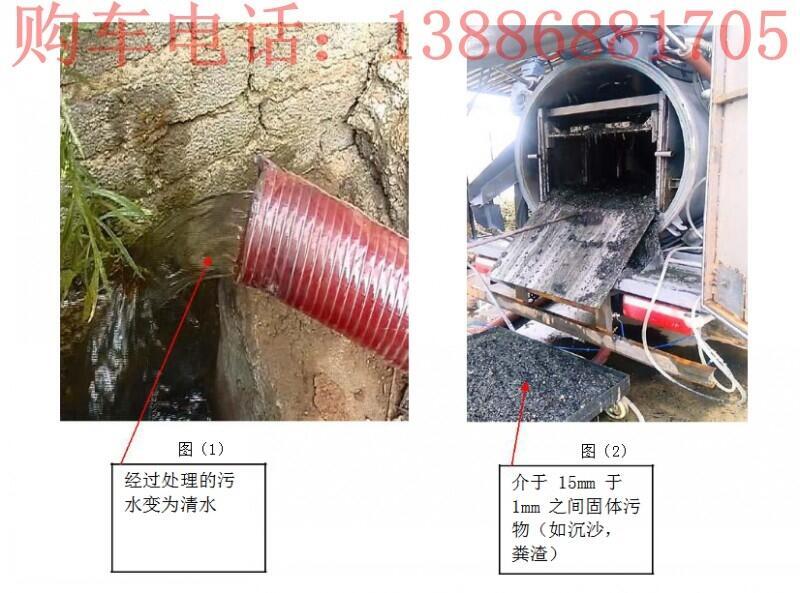 20方污水净化车价格功能介绍:污水处理车是专门针对环卫疏通保洁公司设计制造的,采用圆筒滤网加无轴螺旋的结构对化粪池的污物进行处理,实现固液分离,可即抽即排。抽出的污物不需要 像传统的吸污车那样运到另一个地方倒掉,可当场处理,处理后的污水通过市政管网排走,粪渣可直接打包,当生活垃圾处理。即节省了运输费用,又提高了处理速度。污水处理车既可以靠车身主发动机提供作业动力,也可外接电源使用电机提供作业动力,非常方便。