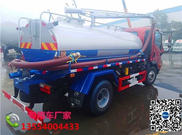 上装配置污罐:Q235武钢8MM厚碳钢板,采用山东2BEA-204水循环真空泵,防溢阀,视粪管,罐体带举升,后盖液压开启,尾部一个100球阀出口,配一根10米吸污管,具有真空度高、吨位大、效率高、用途更广泛的特点。