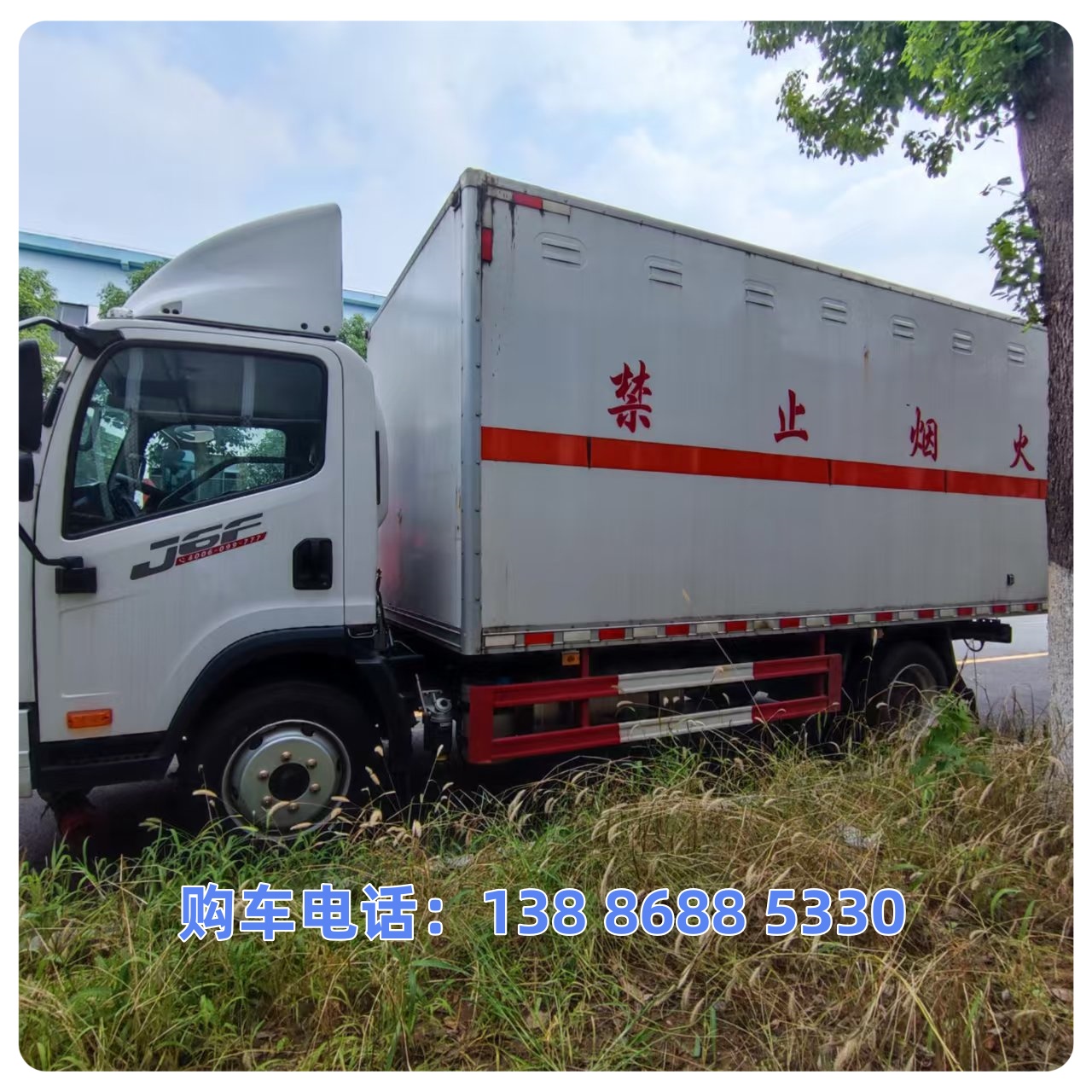 该车适用于运输危险物品为危化品运输车;类项号:2.1,2.2;该车运输的介质为2.1项易燃气体时,车辆采用”易燃气体”标识牌,运输的介质为2.2项非易燃无毒气体时,车辆采用”不燃气体”标识牌;厢体顶部封闭,不可开启;侧、后防护材料均为Q235,侧防护连接方式为焊接加螺栓连接,后防护连接方式为螺栓连接,后防护装置断面尺寸(mm):φ120,离地高度:450mm;选装不带液压尾板时,后防护材质为Q235,连接方式为焊接连接,后防护装置断面尺寸(mm):120×50,离地高度:450mm;该车安装带有卫星定位功能的行驶记录仪;装备限速装置,限速79km/h;前轴装备盘式制动器;排气管前置,装备子午线轮胎,转向轮安装轮胎防爆应急防护装置;选装直接供电式ETC车载装置;ABS防抱死制动系统生产厂家/型号:1.广州瑞立科密汽车电子股份有限公司/CM4XL-4S/4M;2.浙江万安科技股份有限公司/VIE ABS-II;发动机型号/油耗申报值(L/100km)对应关系为:CA4DB1-14E68/16.42,CA4DB1A14E68/16.42;尾板收起状态的水平长度为260mm,尾板总质量为450kg;随底盘选装新前脸驾驶室及车身两侧储气筒、尿素罐不同位置外观;选装不带尾板样式及尾板不同厂家样式,选装箱体不同外观样式.