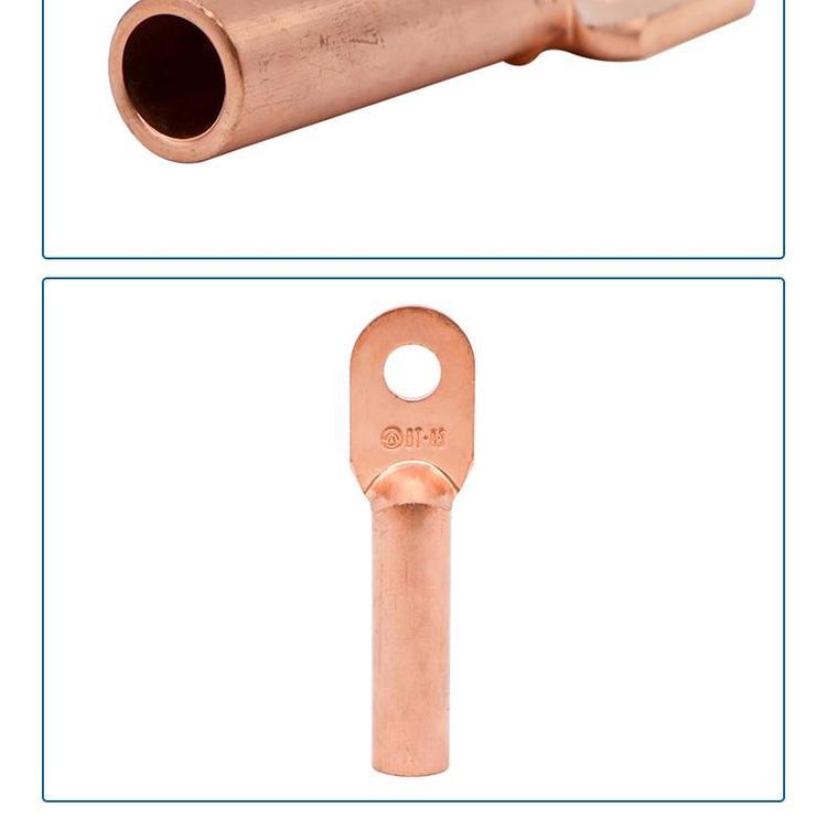 型号1:DT,是由T3铜棒做成, 产品外貌为锅铲圆头,可用于密封堵油,顶端这边为固定上螺丝用,末端插进剥皮后的电缆用端子钳压紧即可。