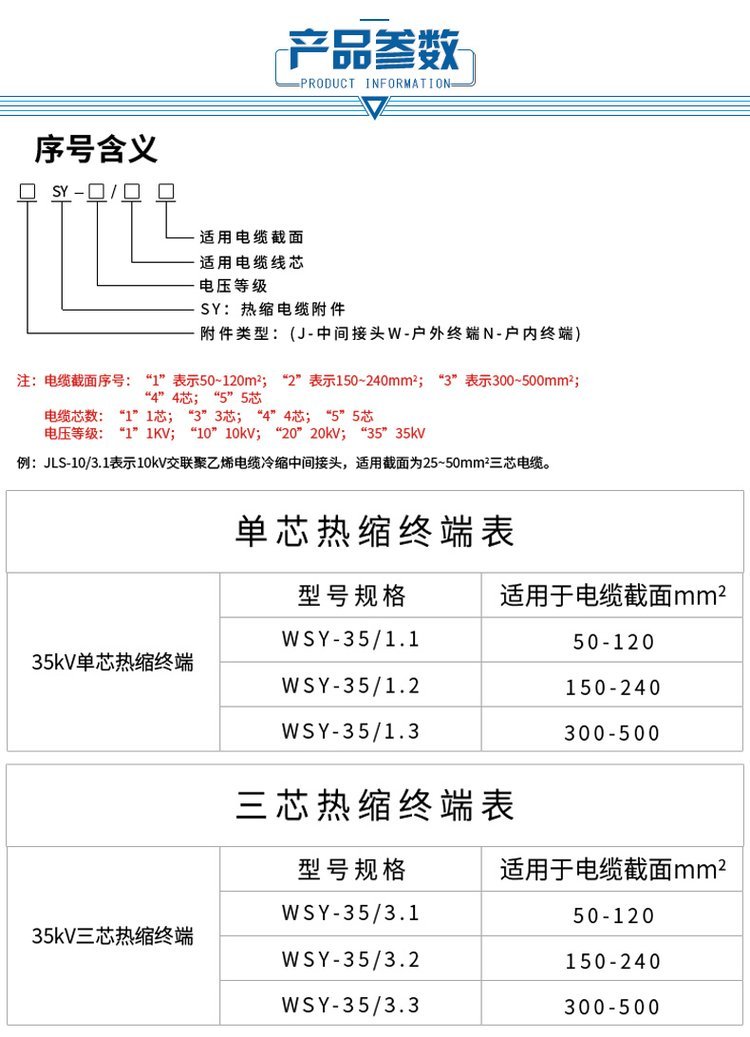 永固电缆附件35KV三芯热缩电缆终端WSY-35/3.2 品牌 | 永固 | ||