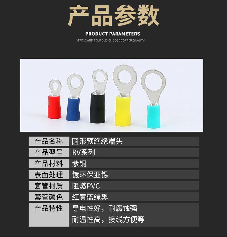 圆形O型冷压端子RV2-16/12/10圆型预绝缘接线端头 铜鼻子 紫铜 宇益 品牌 | 宇益电气 | ||