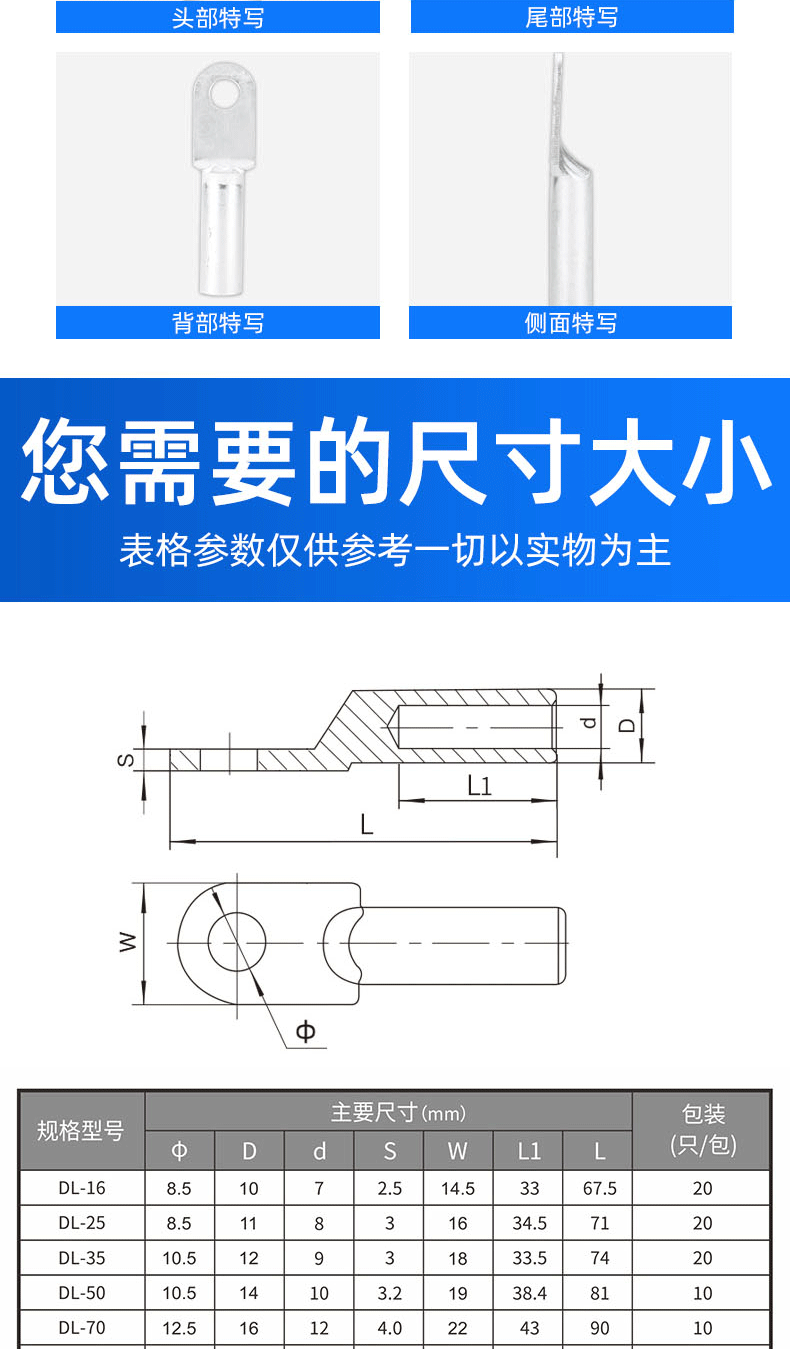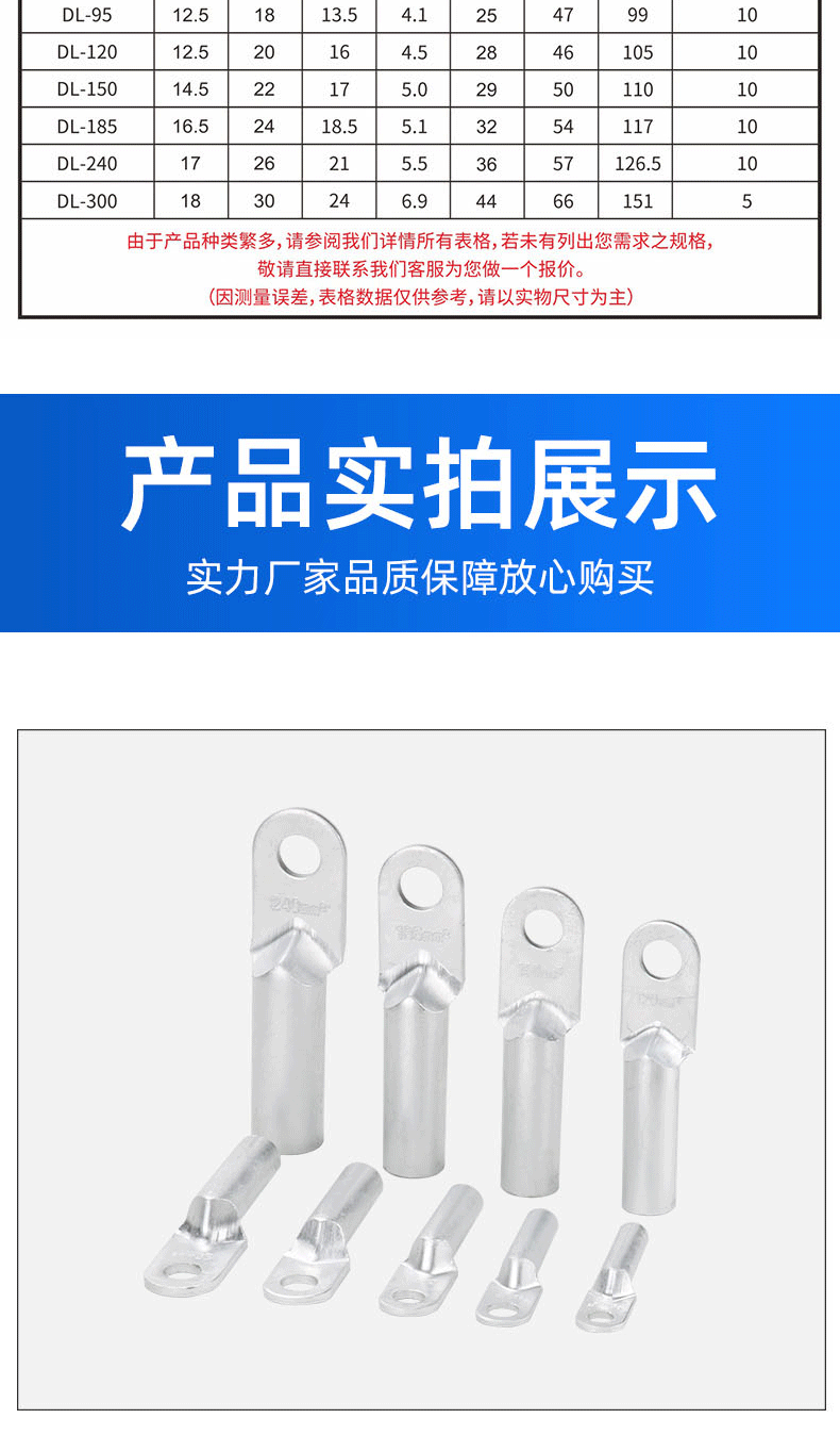 国标DL铝鼻子 铝线鼻 过渡接线端子铜铝耳头16/25/35/50/70/95平方 型号 | 国标铝鼻子DL | ||