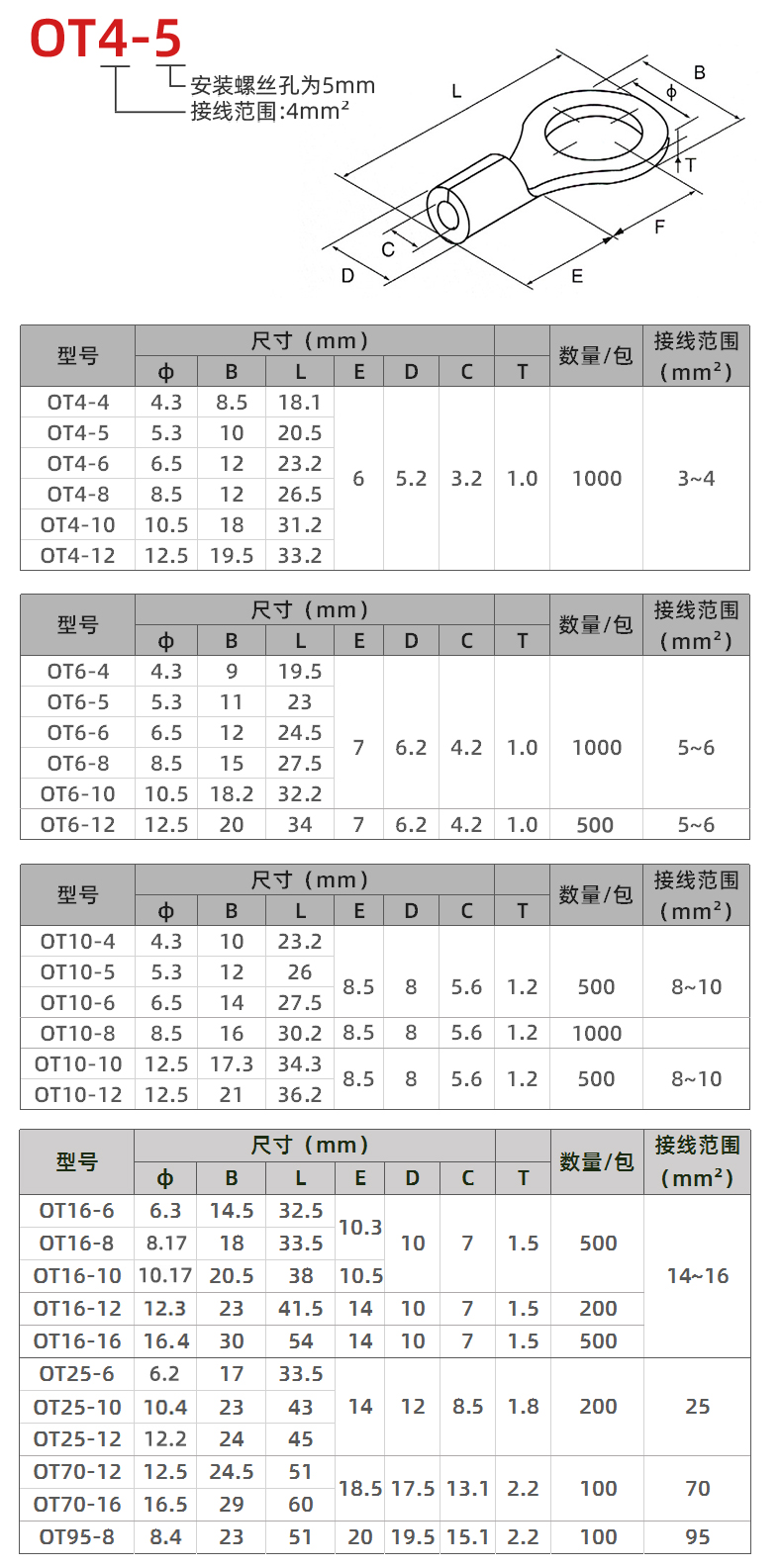 批号OT冷压端子