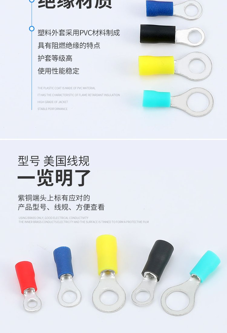 圆形O型冷压端子RV2-16/12/10圆型预绝缘接线端头 铜鼻子 紫铜 宇益 品牌 | 宇益电气 | ||