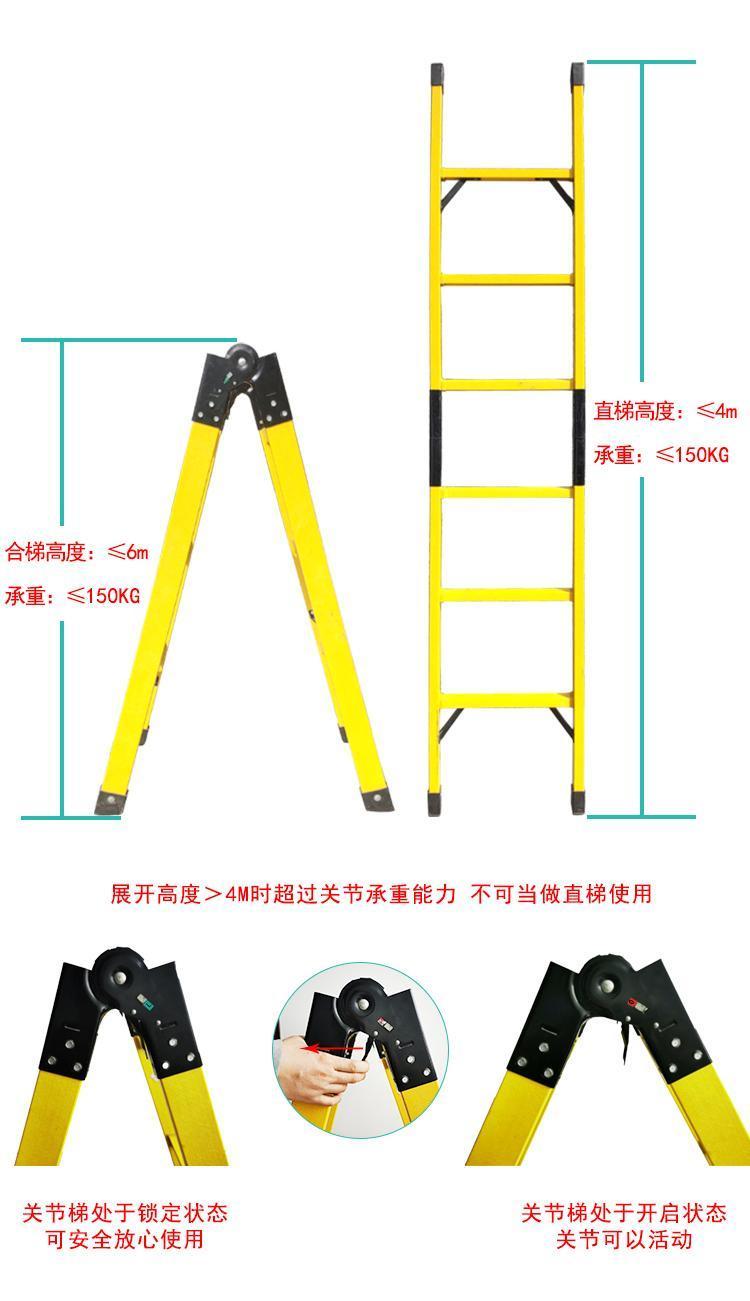 电工专用绝缘关节梯升降伸缩单梯玻璃钢人字梯