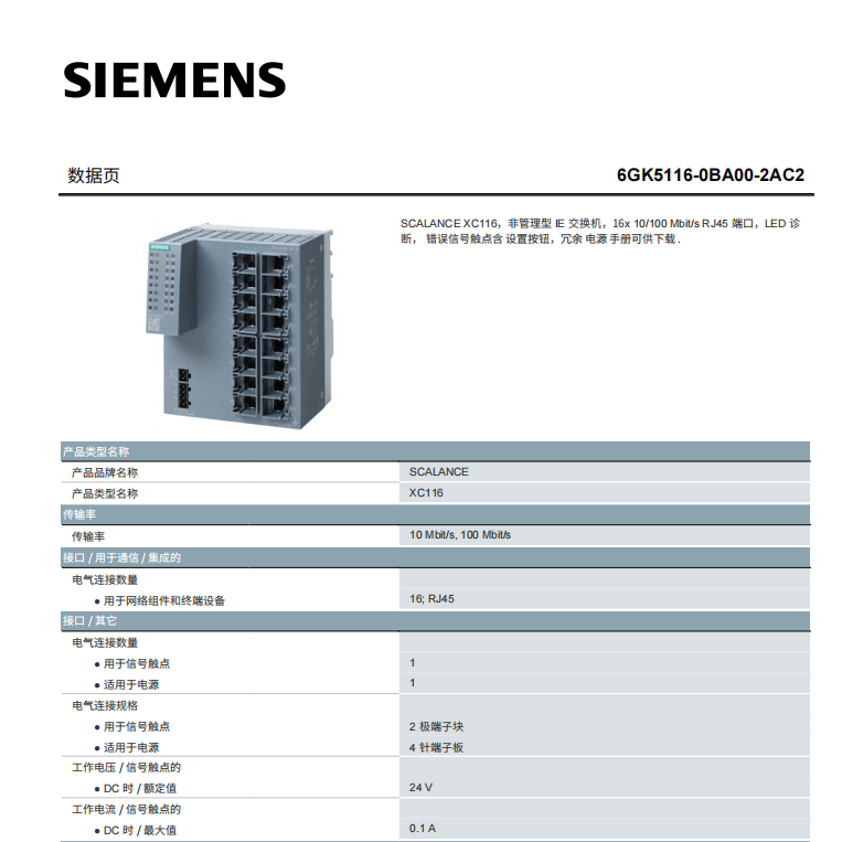 • 规格:6GK5116-0BA00-2AC2