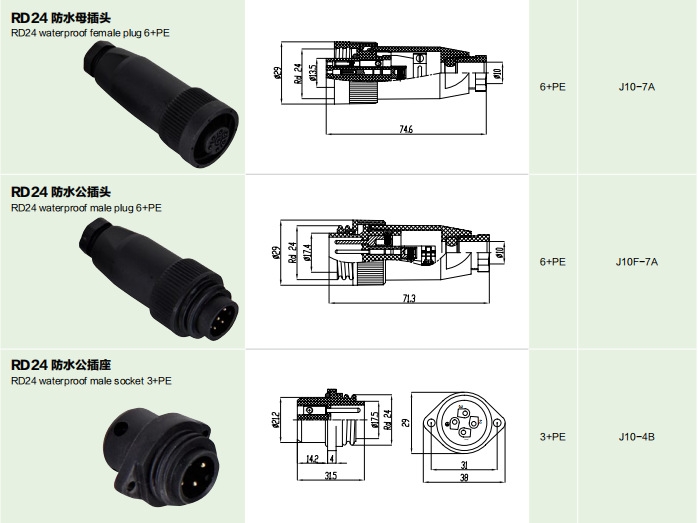 商品名称:RD24塑料防水连接器商品品牌:重强maojwei材料组成:1、外壳材料:黄铜镀镍2、触电材料:铜(镀金/银)3、胶芯材质:增强尼龙锁紧方式:螺纹式接线方式:螺钉压紧防水等级:IP67温度范围:-40℃~+100℃额定电流:16A工作电压:260V
