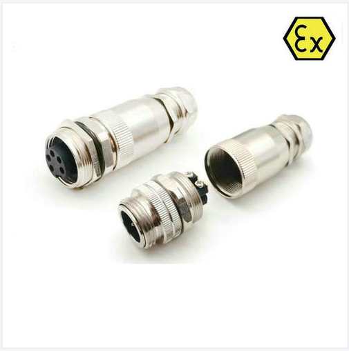 防爆航空插头连接螺纹7/8-16UNF,针式或孔式直头,用户可以现场自己接线,螺丝压紧式或焊接式;插座安装螺纹7/8-16UNF、M25x1,有圆柱脚(焊板式)、焊杯脚(焊线式),3芯4芯5芯可选,预装电缆直径标准的是6-8MM、8-10MM。
