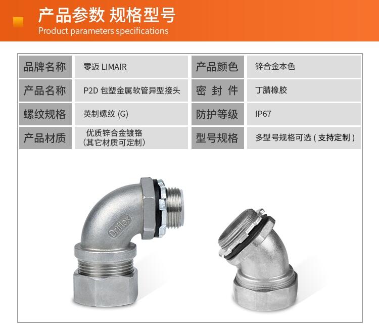 锌合金镀铬包塑金属软管异型防水接头