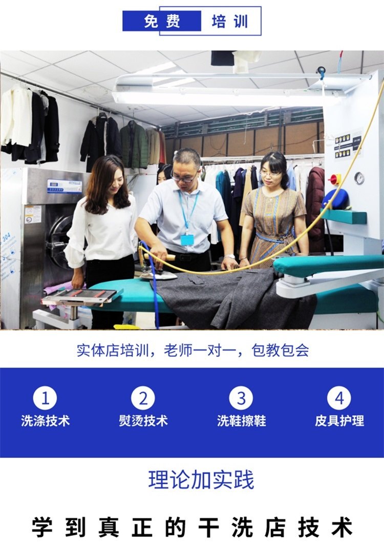 干洗就是采用带有挥发性的有机溶剂代替水去洗衣服,这种方法成本高,衣服不容易变形,所以绝大多数消费者认为干洗比水洗“高级”,去干洗店就是为了干洗,你要是告诉他这件衣服我们是水洗的,说不定要被投诉!干洗机是一种全密封的转筒洗涤设备,配套有溶剂蒸馏回收装置,以利干洗剂的回收重复使用。所以,干洗机全套设备相对较贵