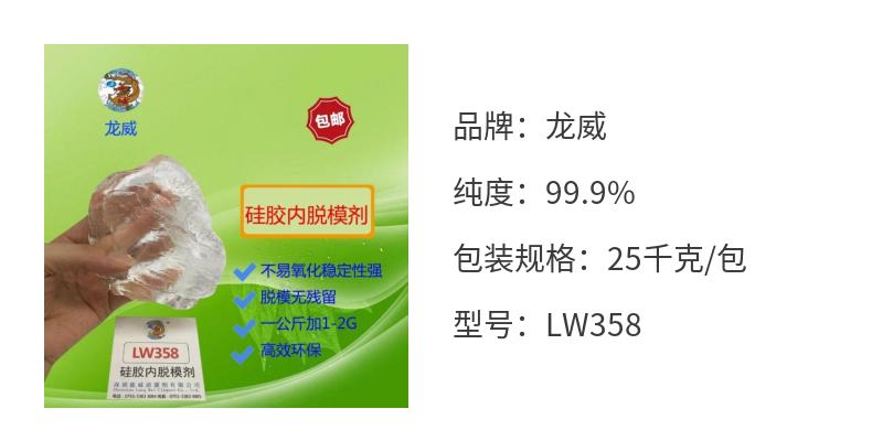 龙威358硅胶内部脱模剂 透明内 105-113 99.9 工业 25千克/包 产品名称 | 硅胶内脱模剂 | ||