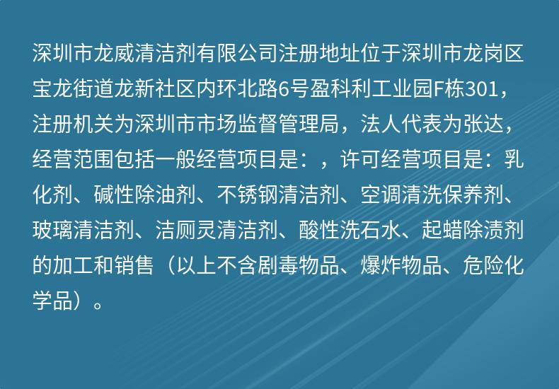 商铺名称:深圳市龙威清洁剂有限公司