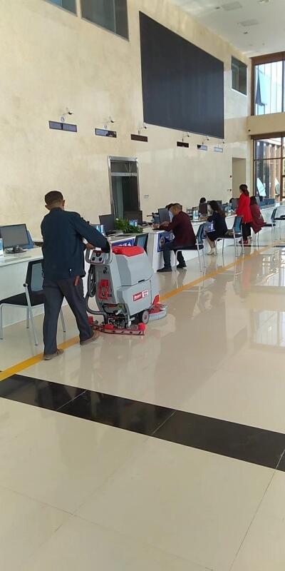单位办公大厅每天都需要接待大量的外来人员,人来人往,带进了很多的脚印泥沙。在以前单位大厅的保洁工作只能依靠人工拖地,效果一直不理想。投入北海手推式洗地机,保持大厅环境干净整洁,也能给群众一个良好的形象。