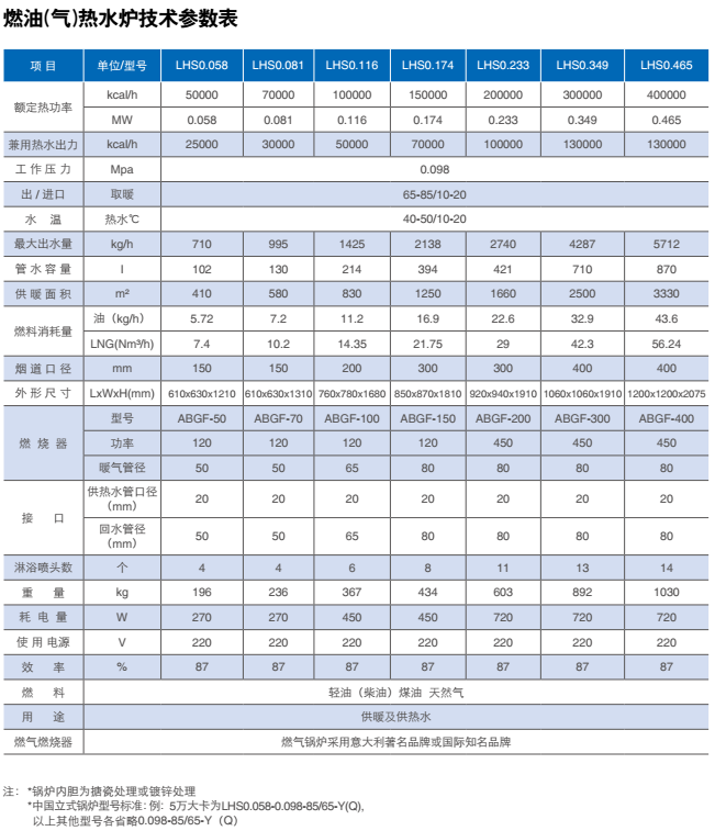 注:本公司保留对锅炉参数进行修改的权力;也保留对相关尺寸进行修改的权力。