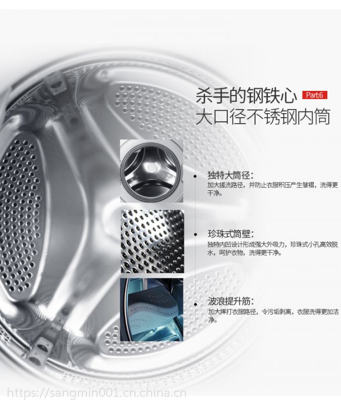 它拥有8.5公斤超大容量,505mm超宽不锈钢蜂巢水晶内筒,摔打洗涤更彻底;一体成型箱体,高强度外观简洁;led大屏显示,直观易读;超大视窗,洗涤过程随时可见;自动添加洗涤液,使用更加方便。