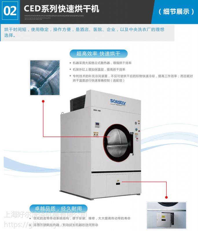 通过ce安全认证.上海航星15公斤烘干机型号,洗衣店蒸汽加热烘干机,gzz-15烘干机多少钱?15公斤的衣服烘干机是洗衣店常规的烘干设备,15公斤的烘干机工作能力强大。多多少少的衣物都可以烘干,冬天羽绒服多,棉衣多,一般都要水洗机和手工洗,遇到阴雨天气必须要用到烘干机,衣物烘干机烘出来的衣物蓬松,柔软,洁净度好。一件衣物洗的好与不好,都是烘干机的功劳。