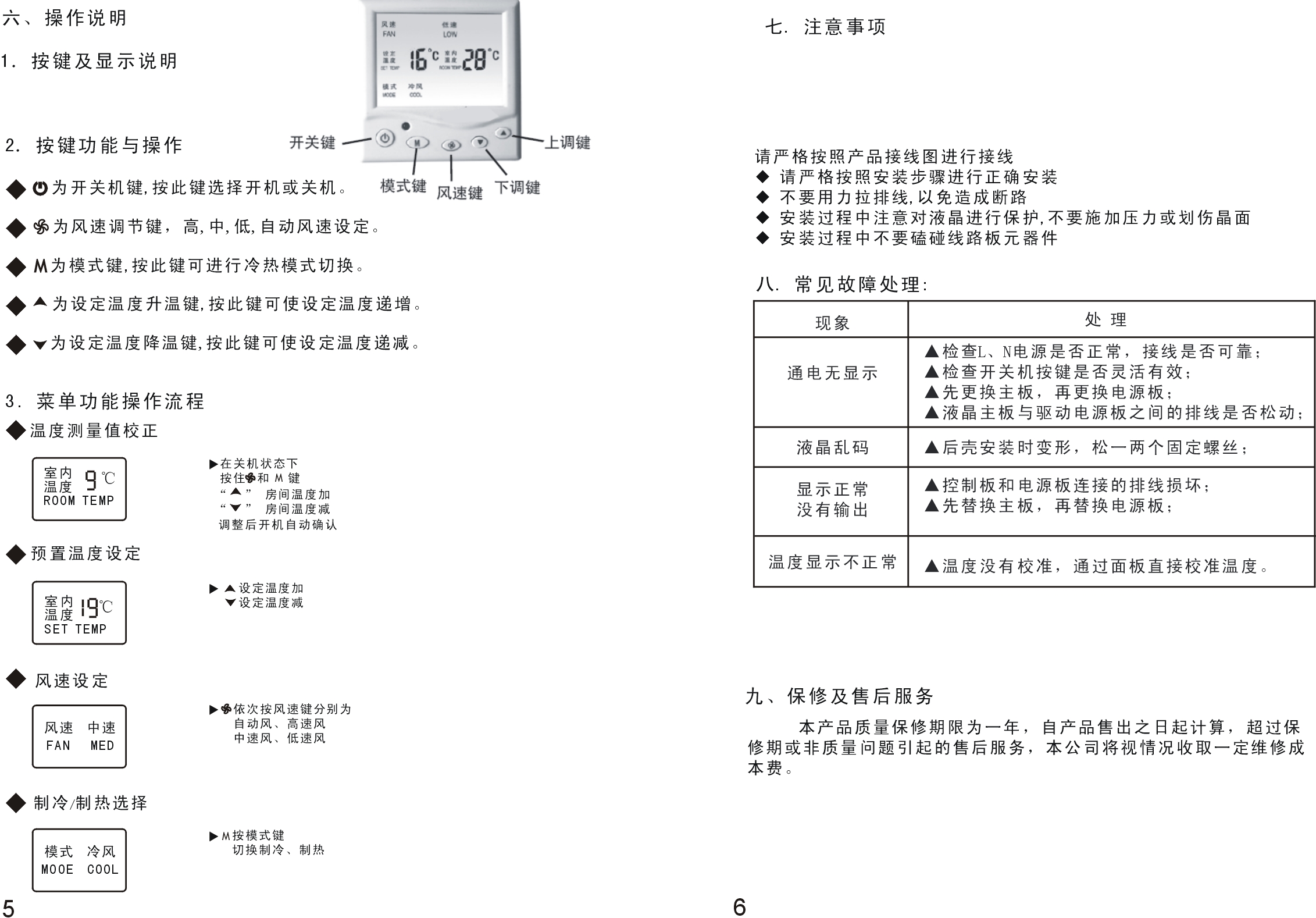 风机盘管控制面中央空调液晶温度控制开关智能温度控制器